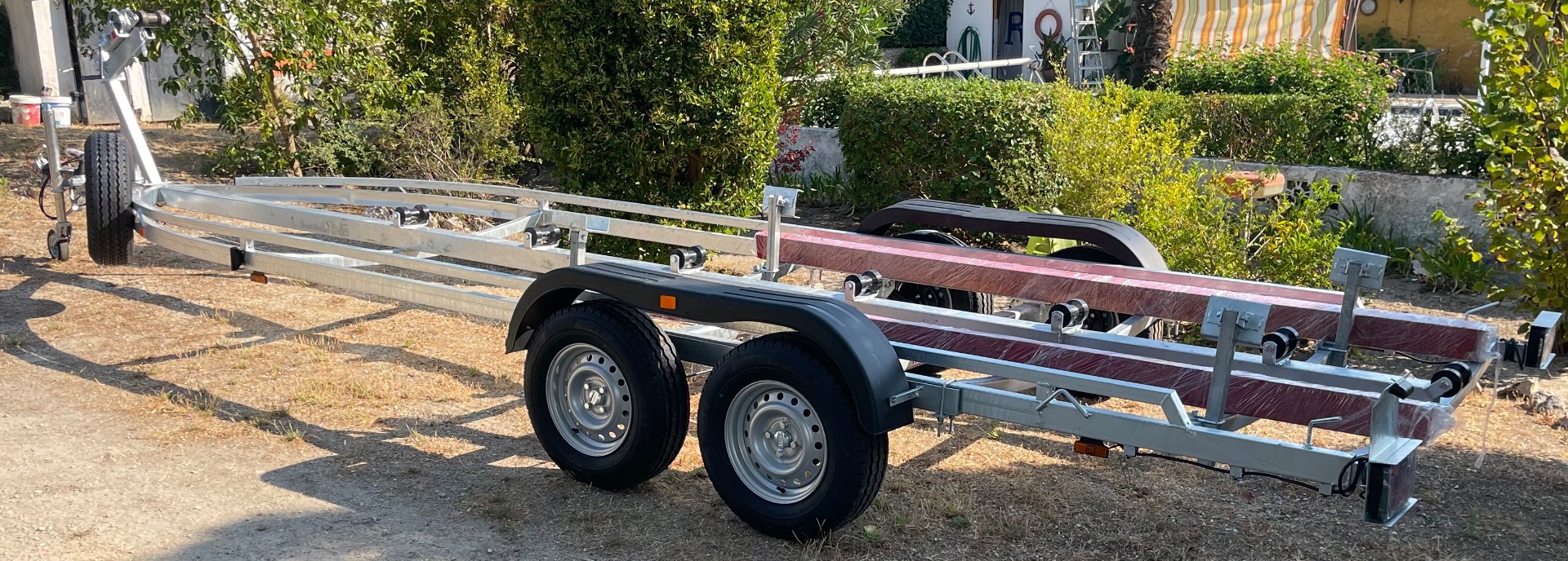 Apresentamos atrelados homologados projetados especificamente para o transporte de barcos com pesos variando de 2700kg a 3500kg. Nossos atrelados estão disponíveis em dimensões que variam de 6,5m a 11,7m, equipados com dois ou três eixos e sistema de freio de inércia, garantindo segurança e eficiência durante o transporte.